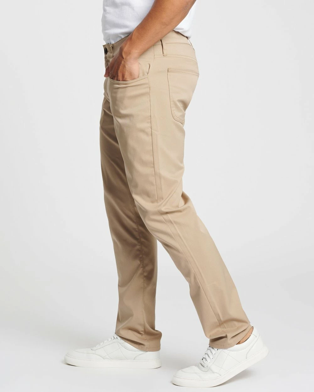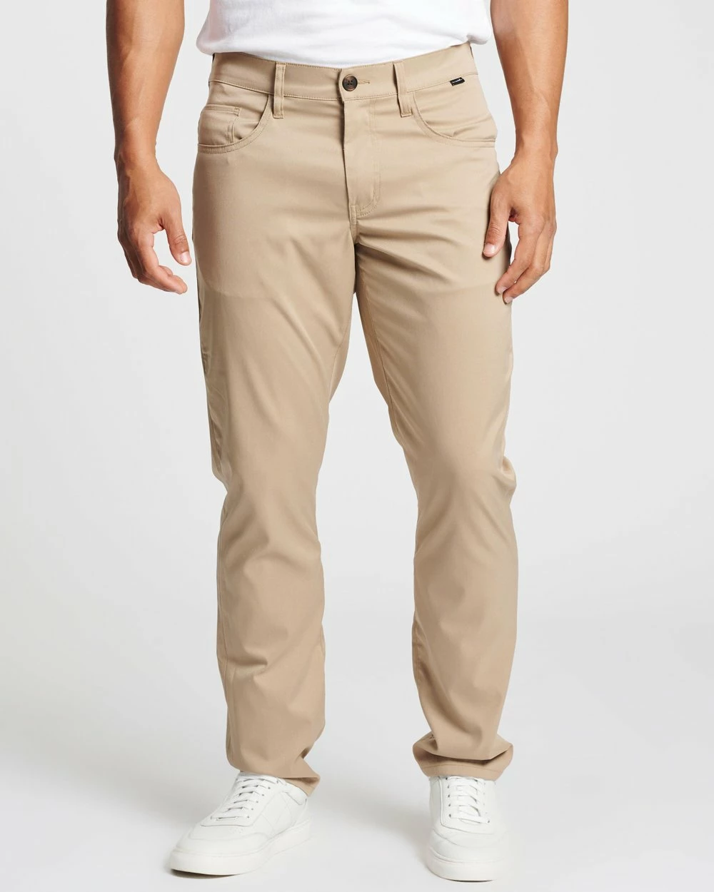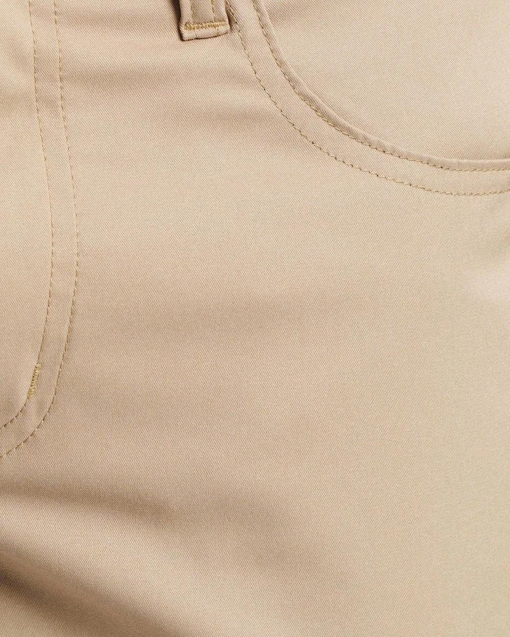 – Zip fly; belt-looped waistband