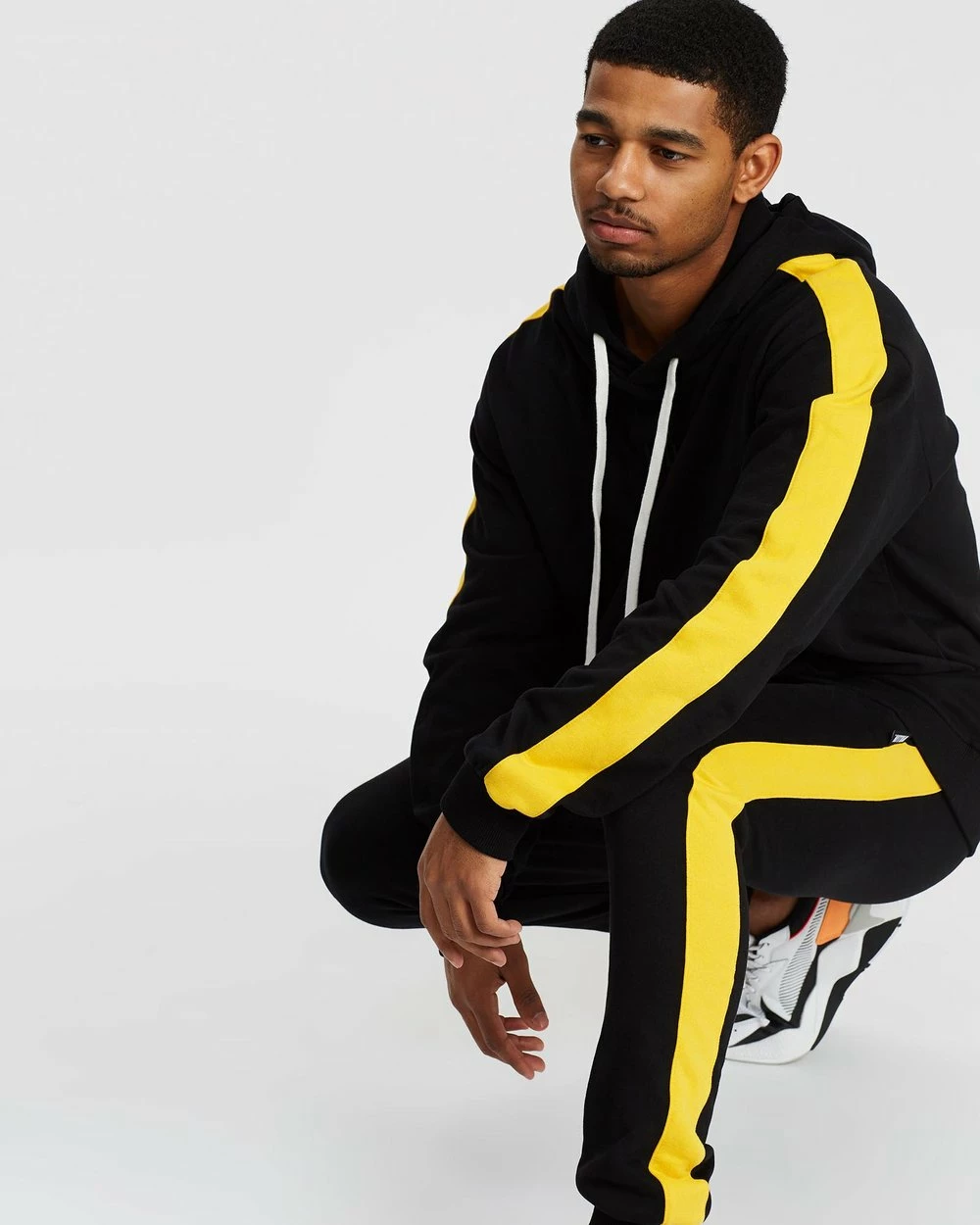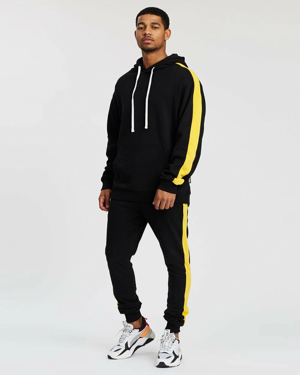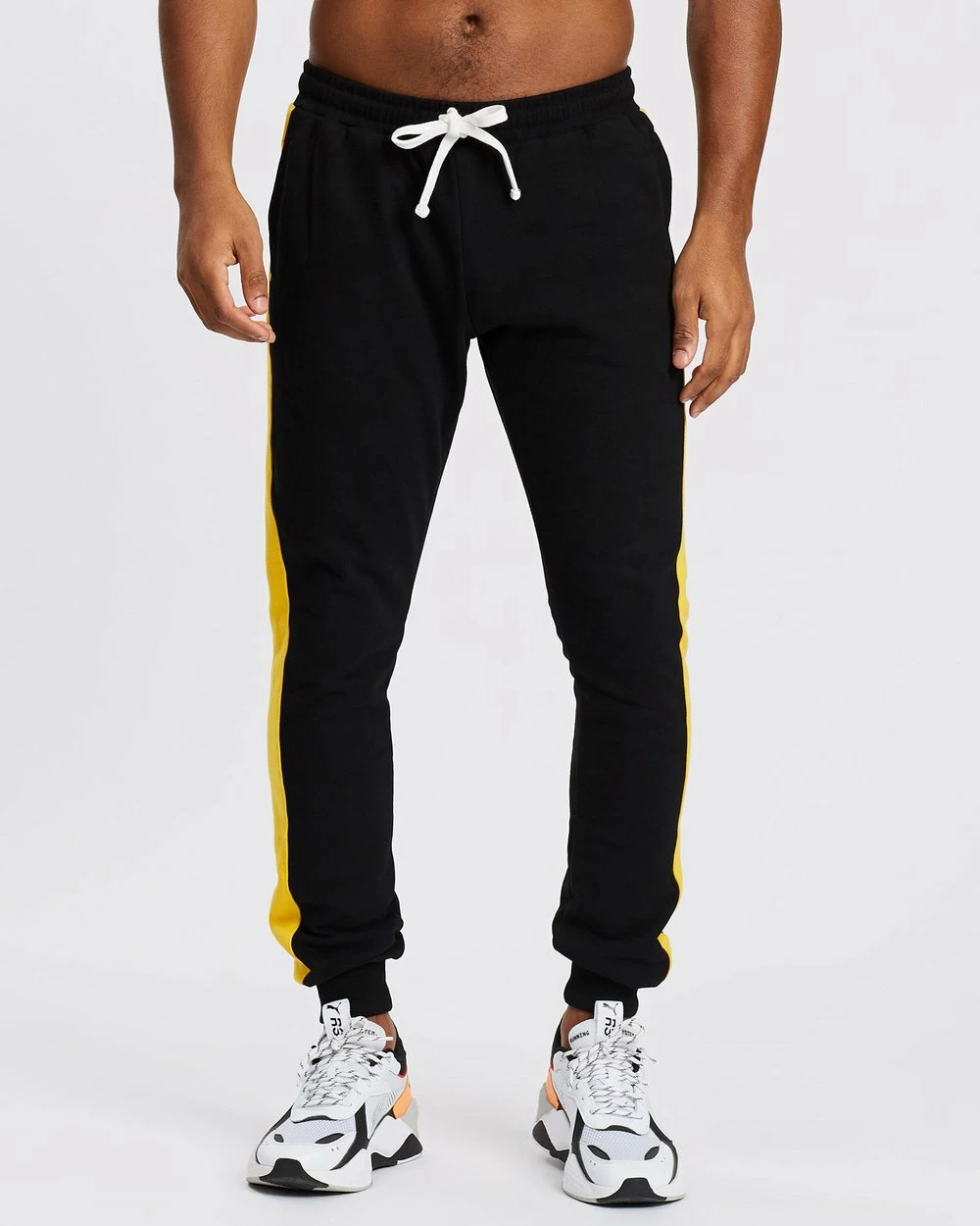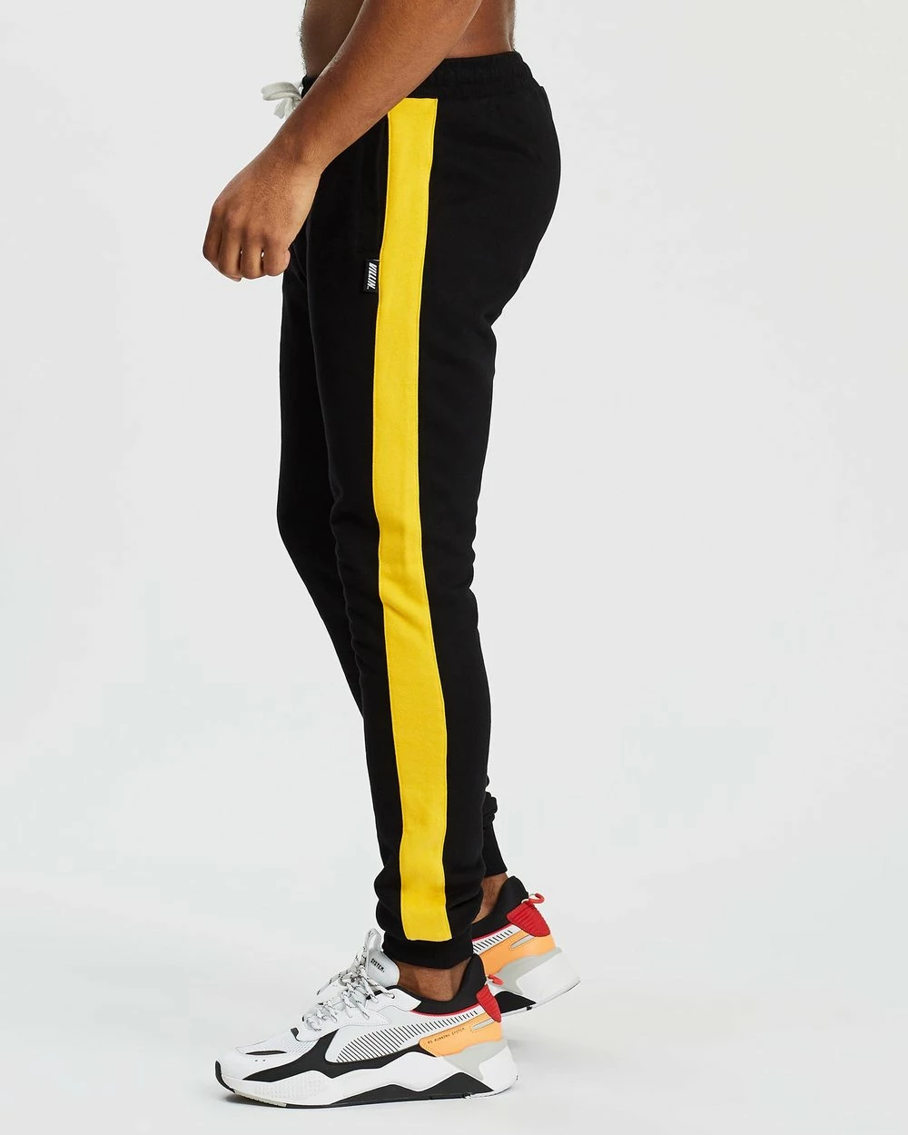 Our model is wearing size medium tracksuit pants. He is 182.9cm (6’0”) tall with a 94.0cm (37”) chest and a 76.2cm (30”) waist.