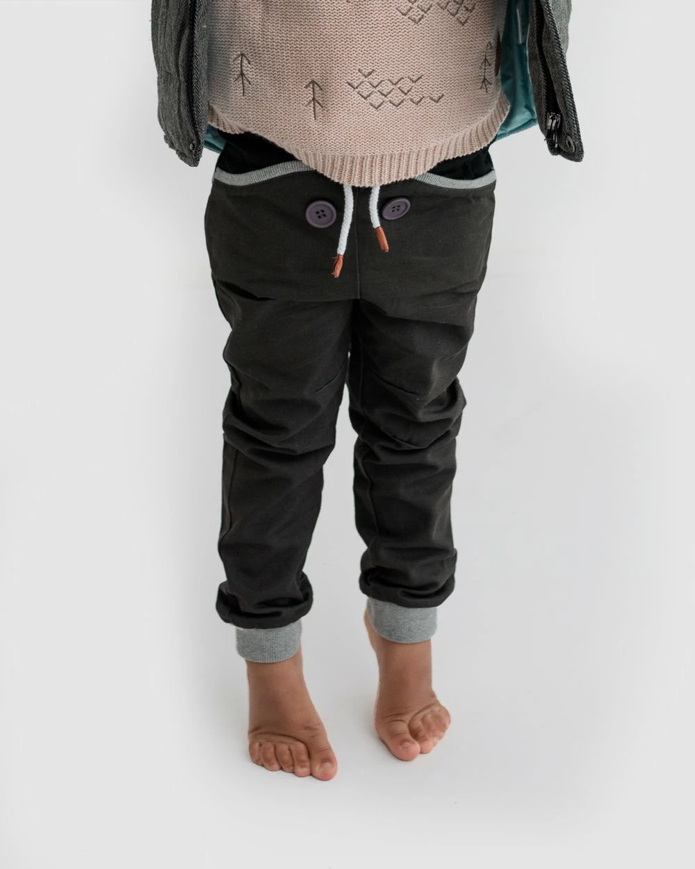 Drawing inspiration from explorers and adventurers, The Discoverer Pants by Wild Island combine vintage-style tailoring and button detailing with the modern-day comfort of joggers, all in a monochrome tonal palette of charcoal, black and light grey.
