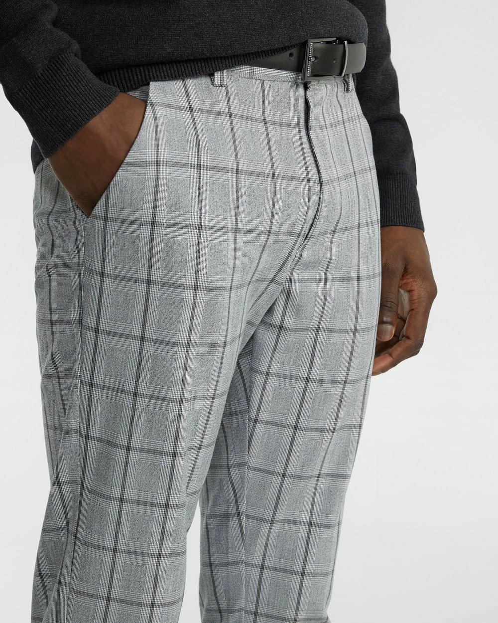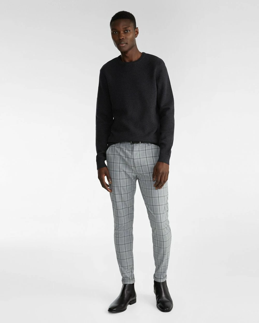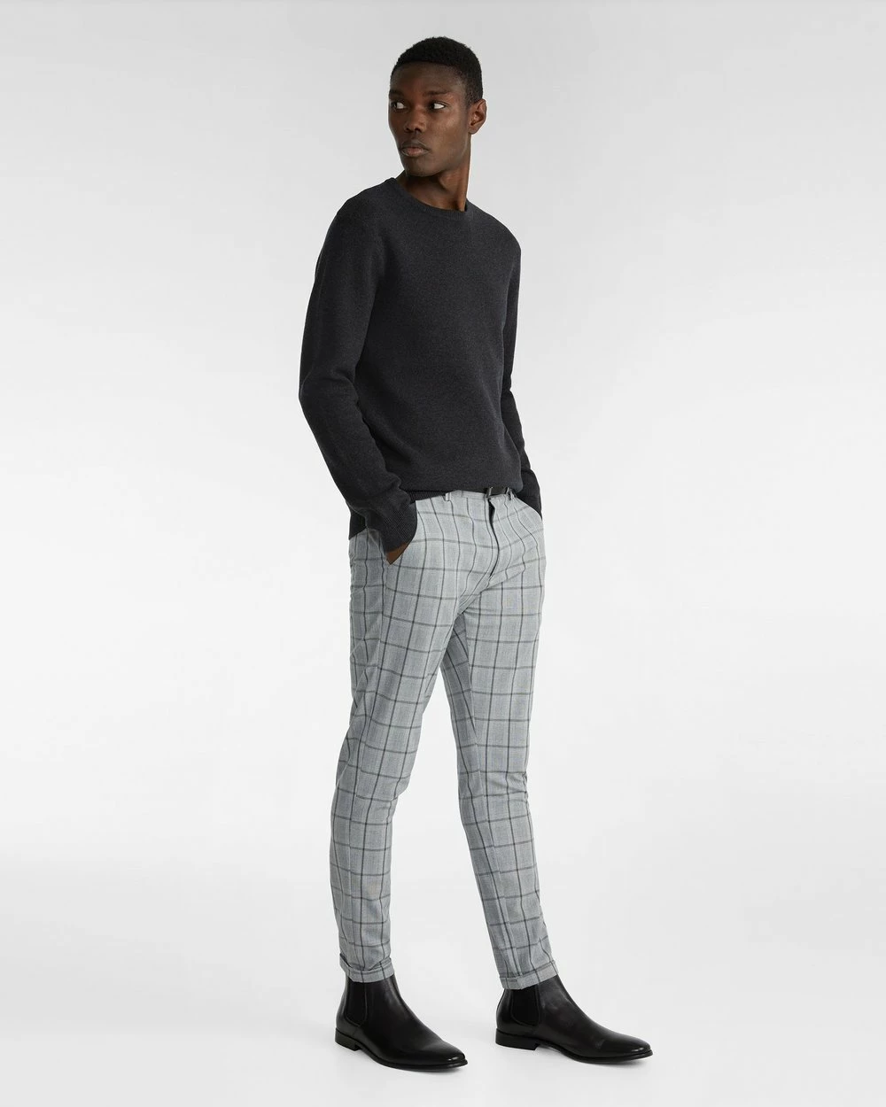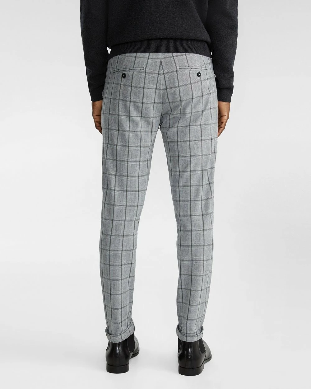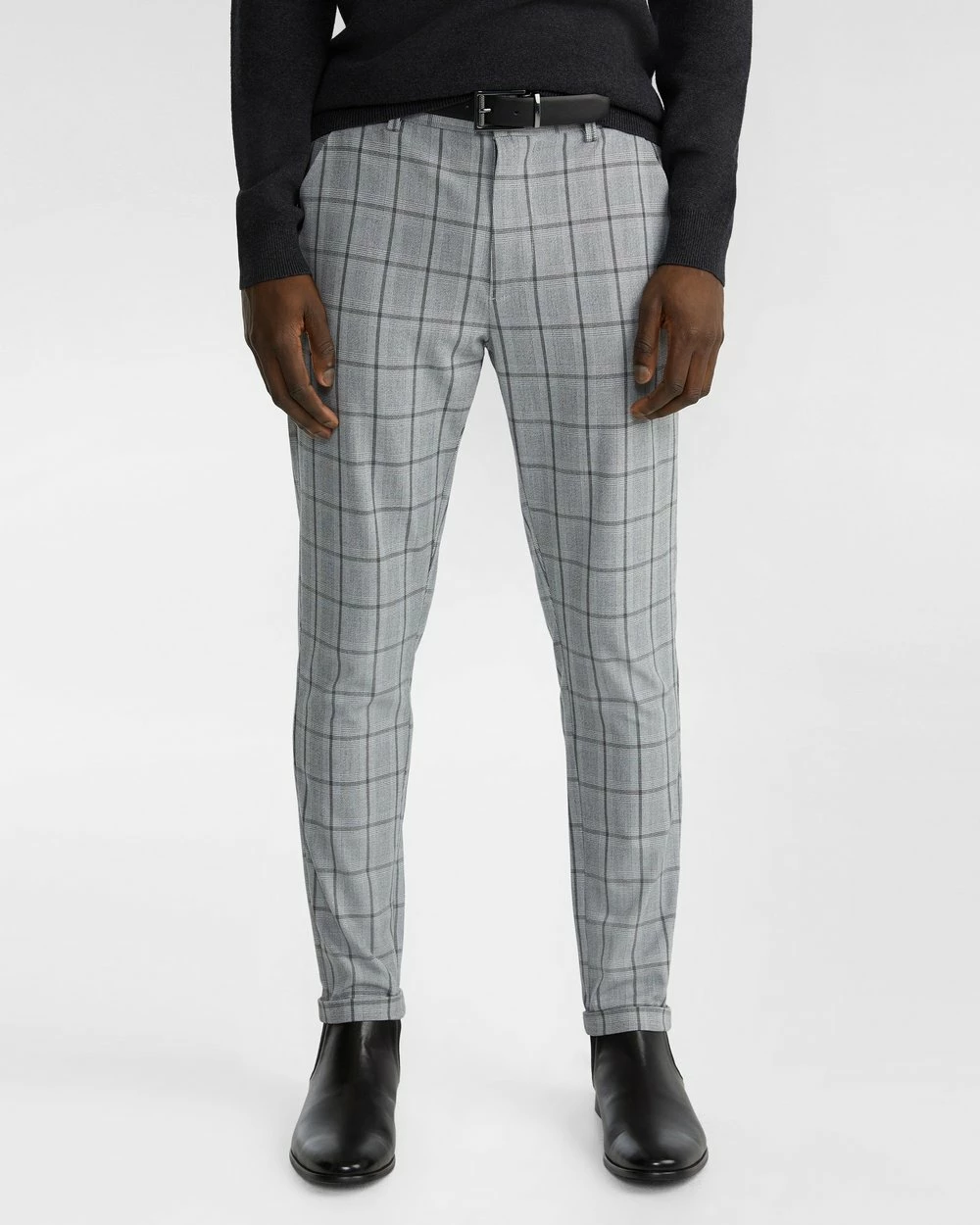 – Length: Inside Leg: 80cm; Front Rise: 25cm; Leg Opening: 32cm (size 32)- Skinny fit- Check pattern- Stretch- Polyester blend