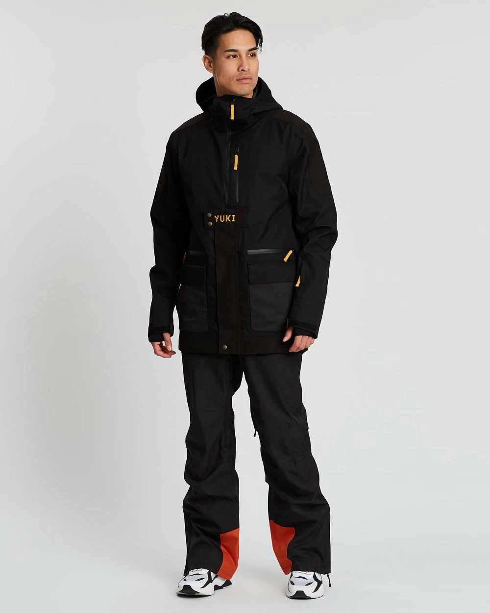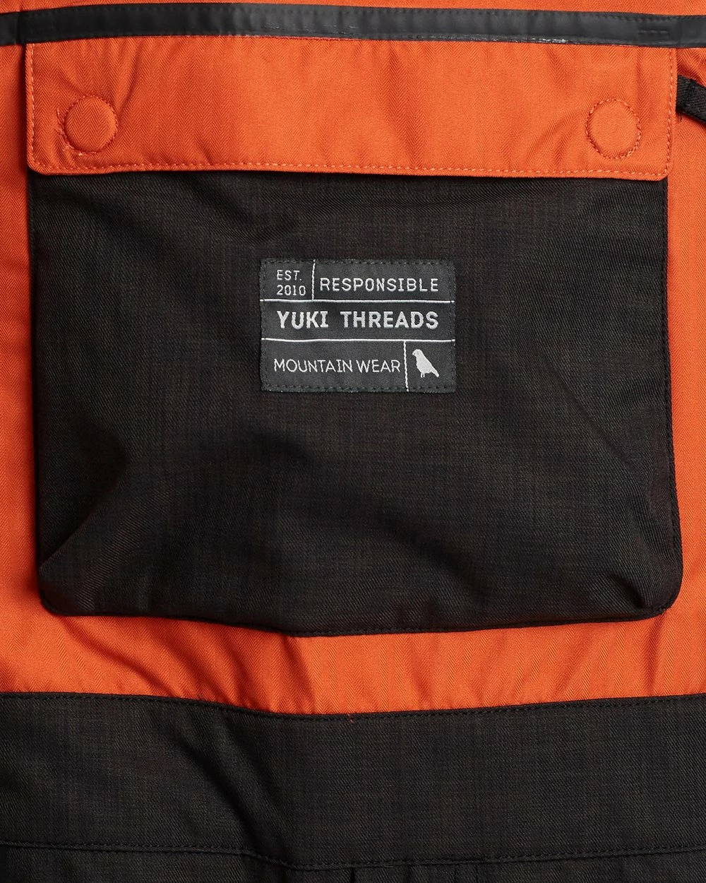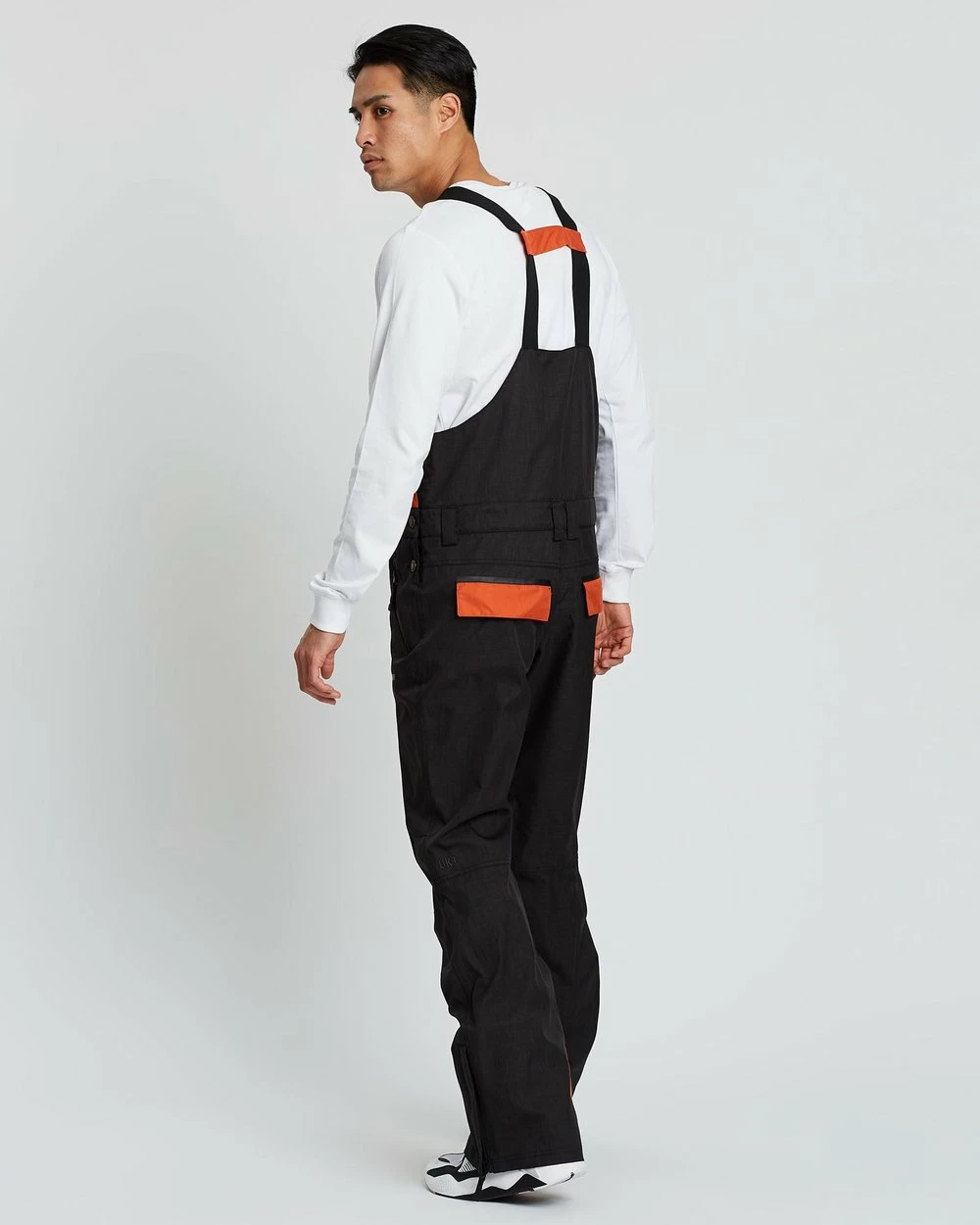 – Squared bib front with zip pocket and tonal branded embroidery