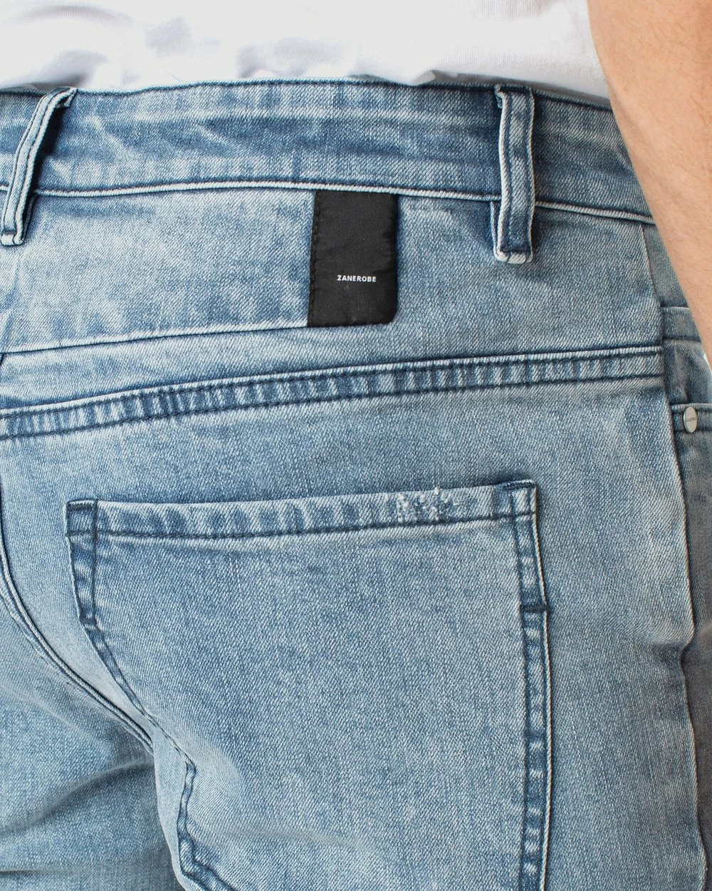 ZANEROBEwas created in 2002 by Leith Testoni and Jonathan Yeo; two contrastingly different individuals with a complementary passion and vision for design. From humble beginnings in Sydney, Australia, the brand has rapidly expanded worldwide. With ZANEROBE tees, tanks and pants being well known internationally for their quality craftsmanship and clever, bold style. The Joe Blow Denim in Mineral Blue is a wardrobe essential.