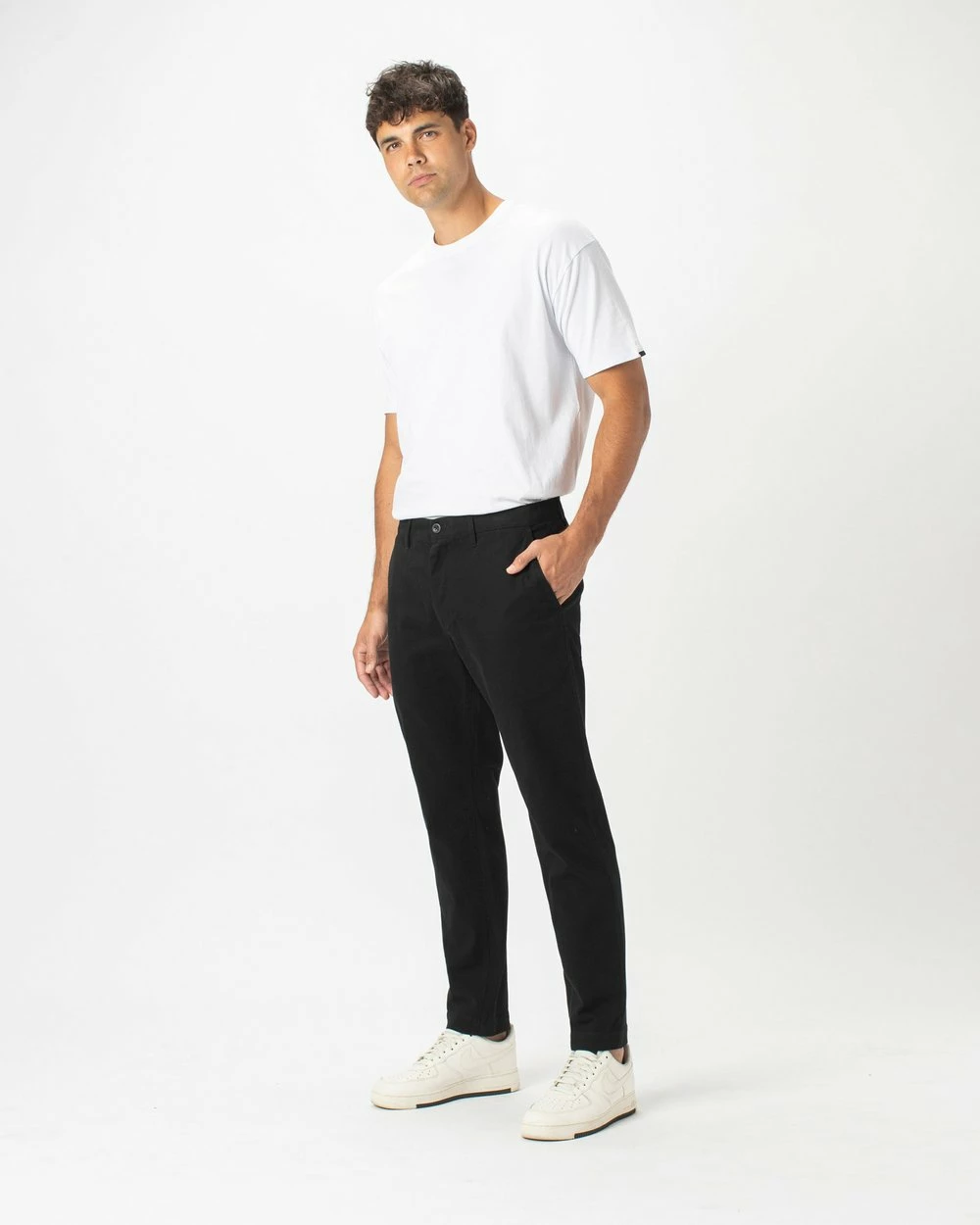 ZANEROBEwas created in 2002 by Leith Testoni and Jonathan Yeo; two contrastingly different individuals with a complementary passion and vision for design. From humble beginnings in Sydney, Australia, the brand has rapidly expanded worldwide. With ZANEROBE tees, tanks and pants being well known internationally for their quality craftsmanship and clever, bold style. The Kyoto Pant in Black is a modern chino pant featuring a slim-tapered fit.