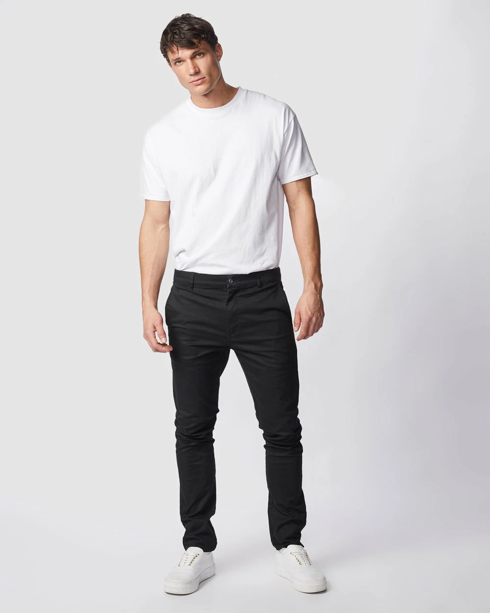 Our model is wearing size 32 chinos. He is 185cm tall with a 95cm chest and an 80cm waist.