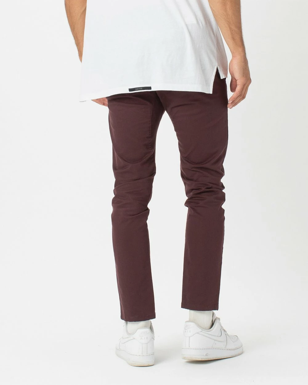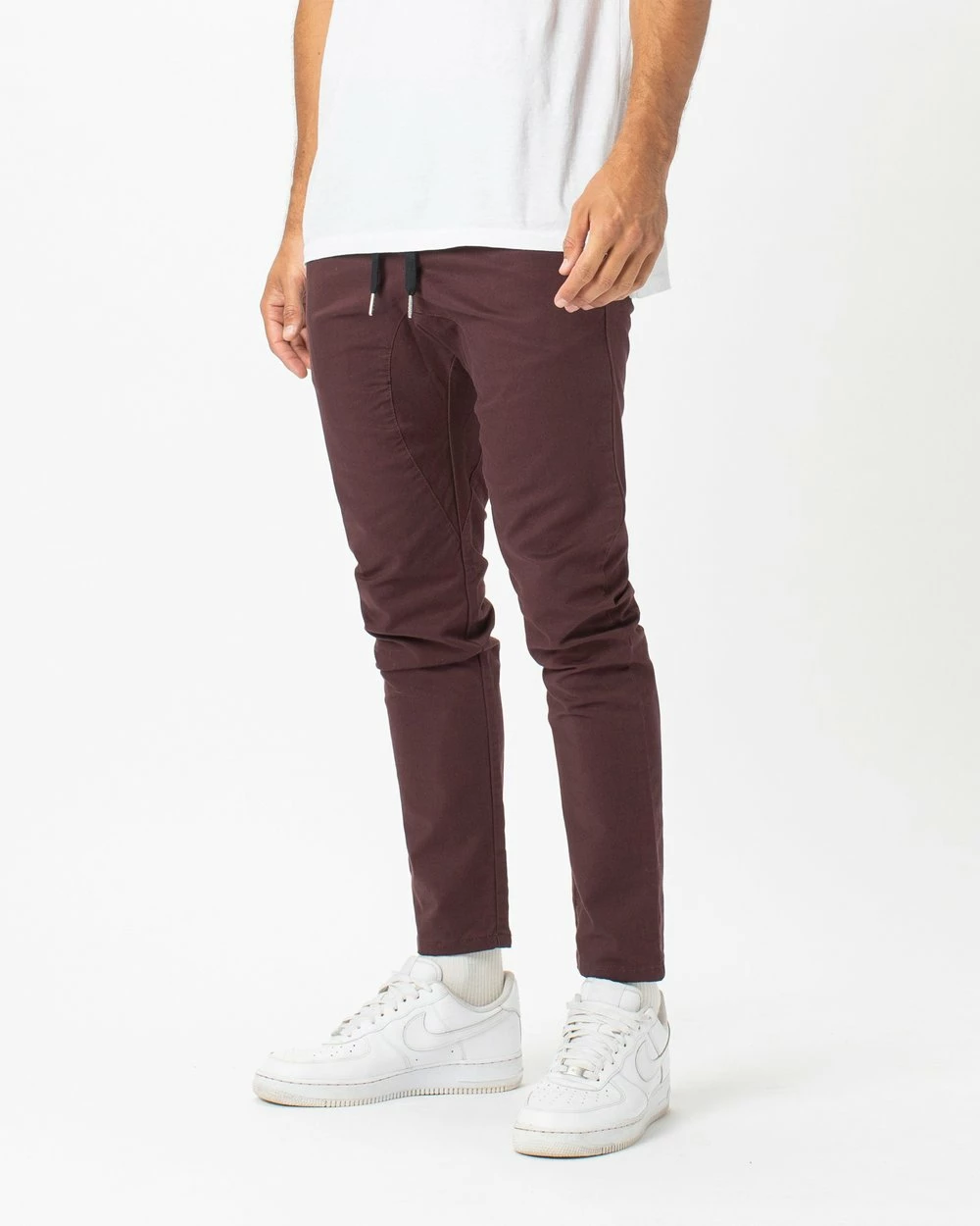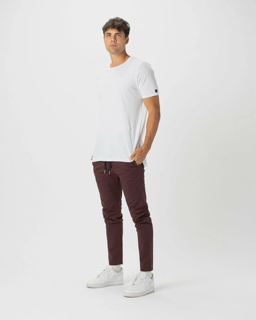 ZANEROBEwas created in 2002 by Leith Testoni and Jonathan Yeo; two contrastingly different individuals with a complementary passion and vision for design. From humble beginnings in Sydney, Australia, the brand has rapidly expanded worldwide. With ZANEROBE tees, tanks and pants being well known internationally for their quality craftsmanship and clever, bold style. The Sureshot Chino in Port is the chino version of their best selling Sureshot Jogger.