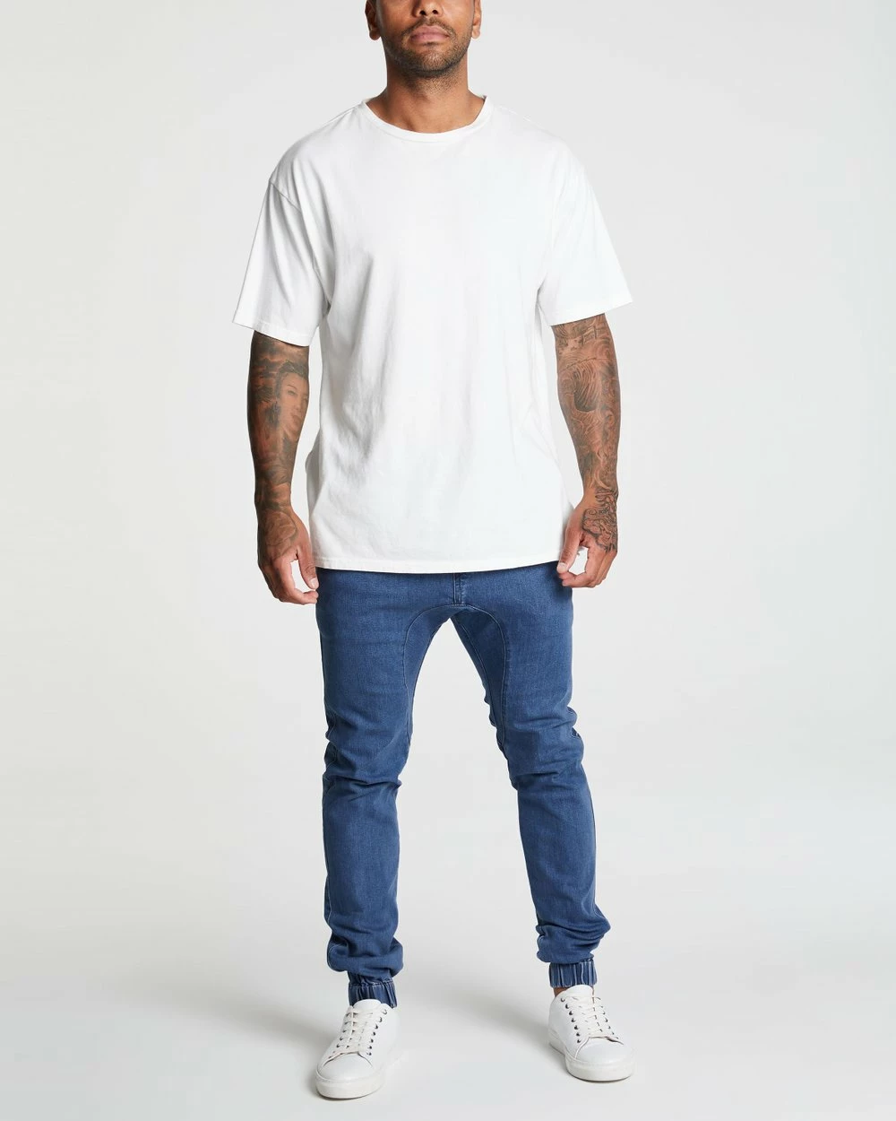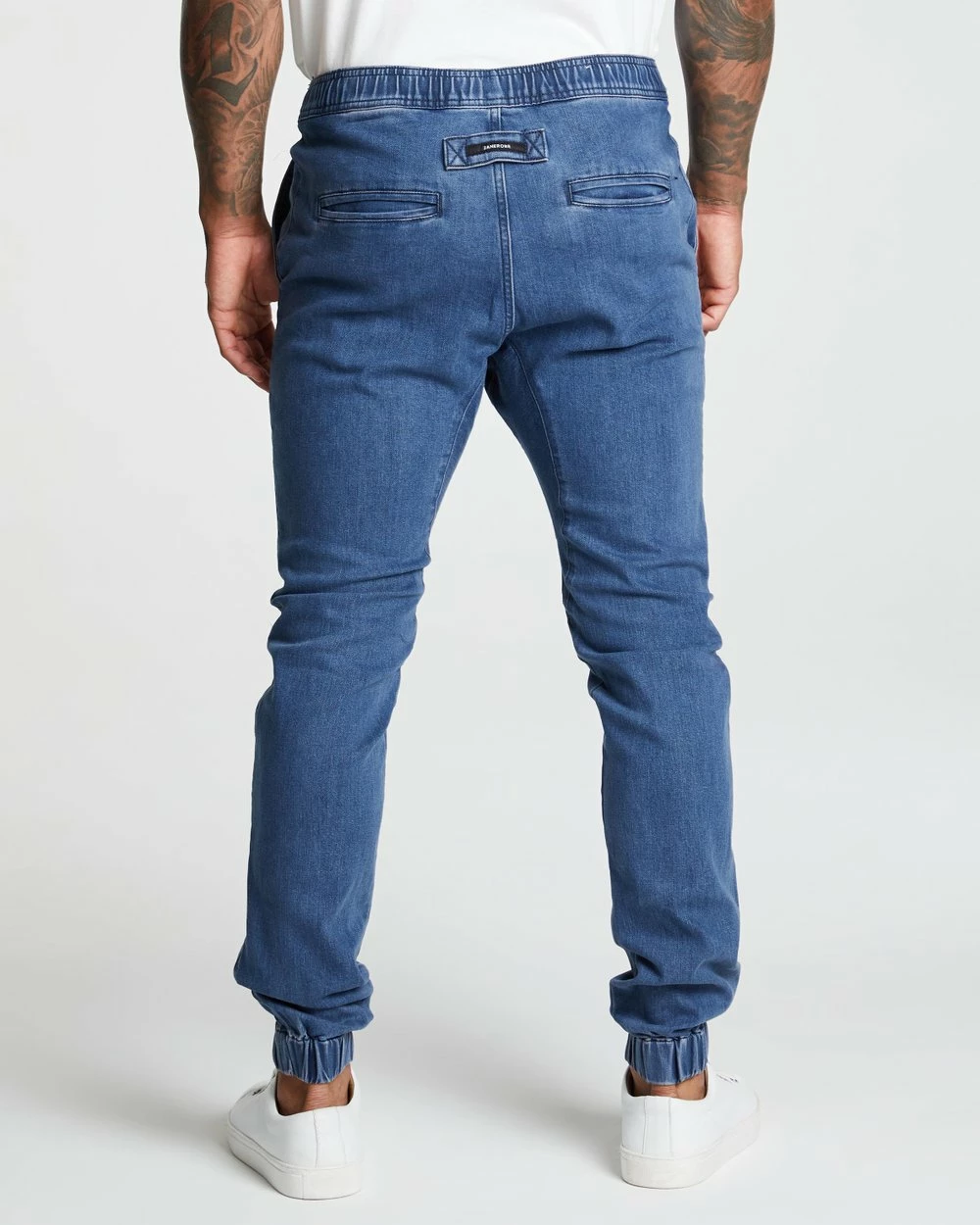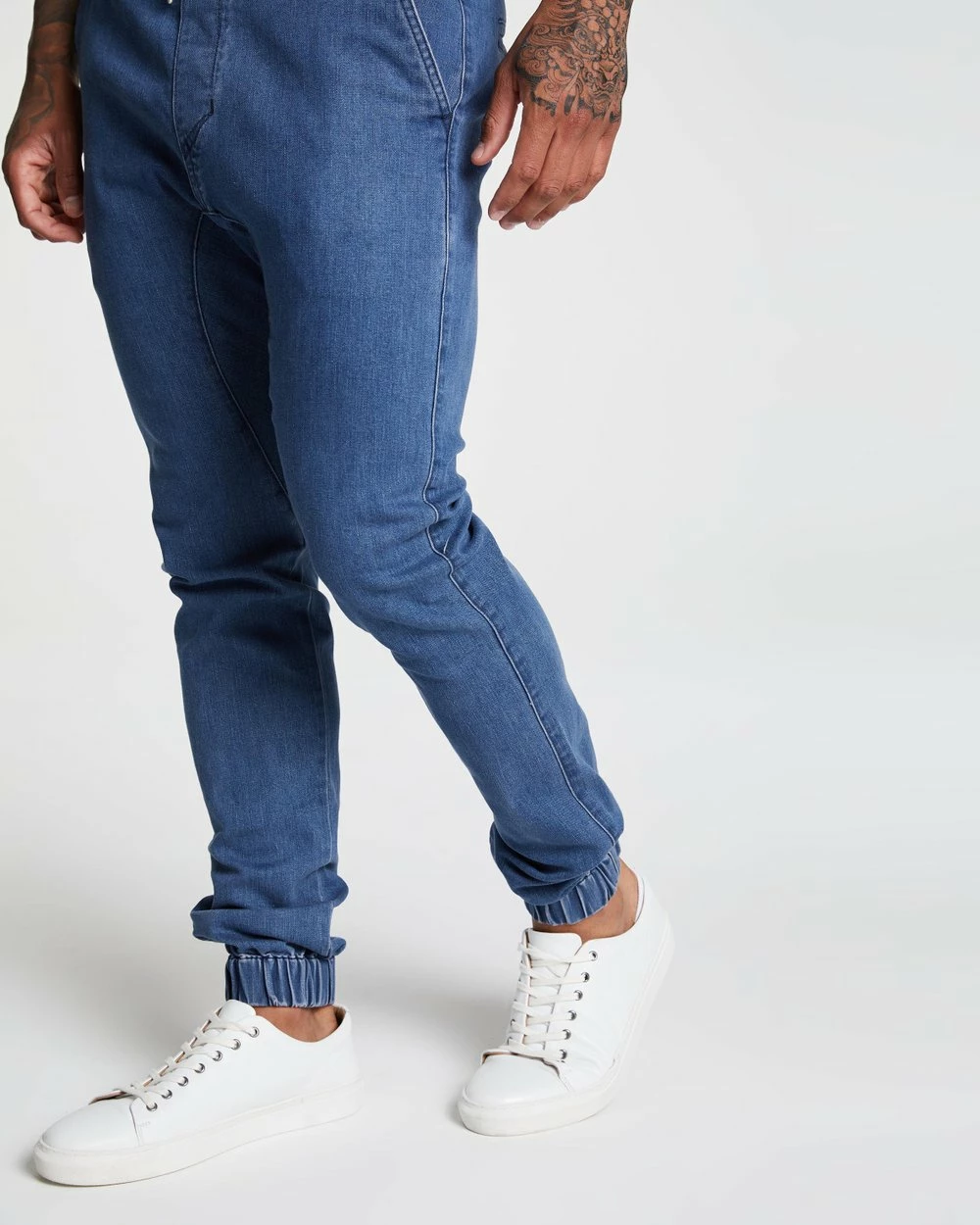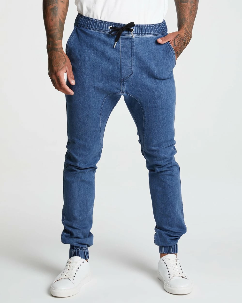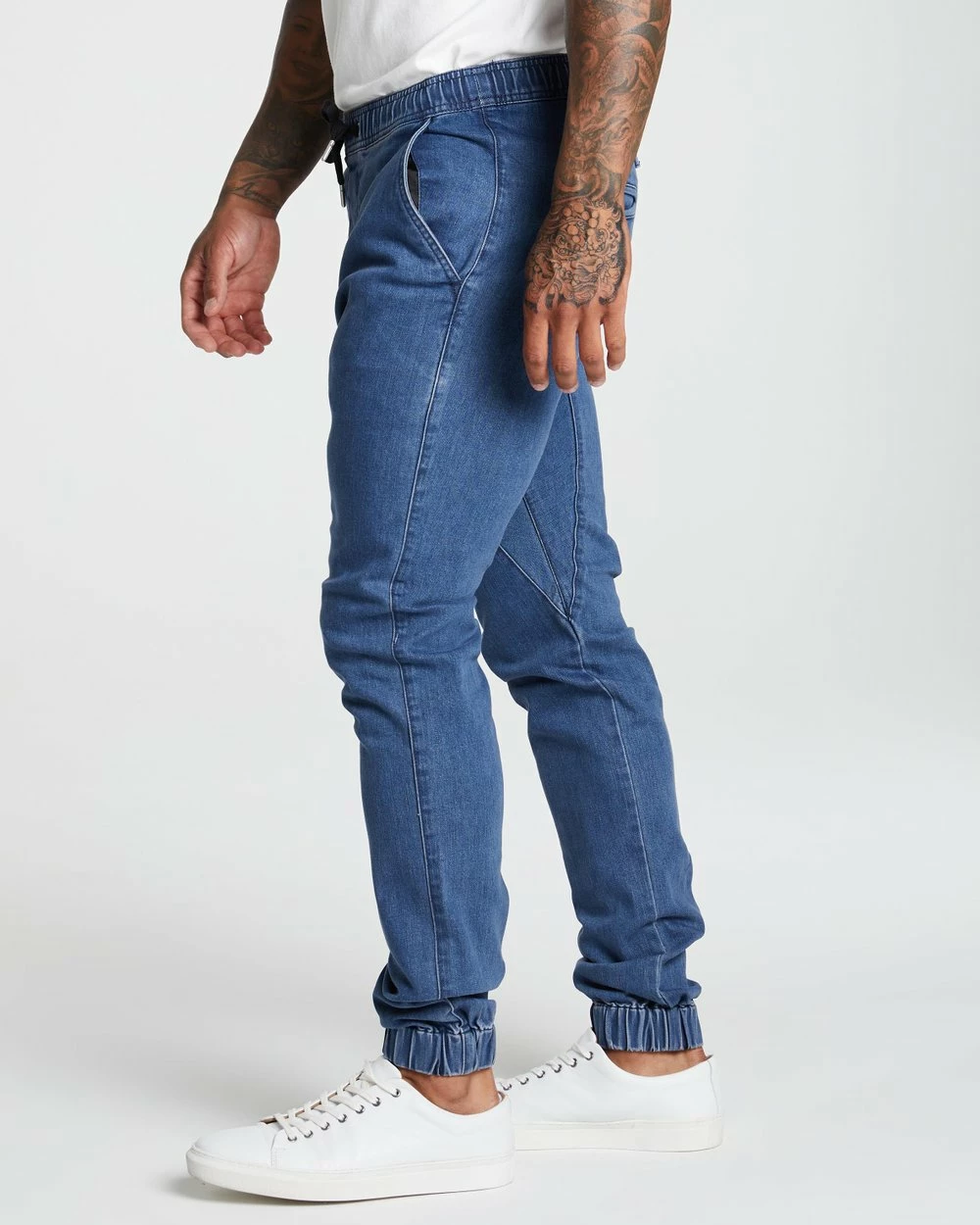 – Relaxed seat; tapered towards cuffs