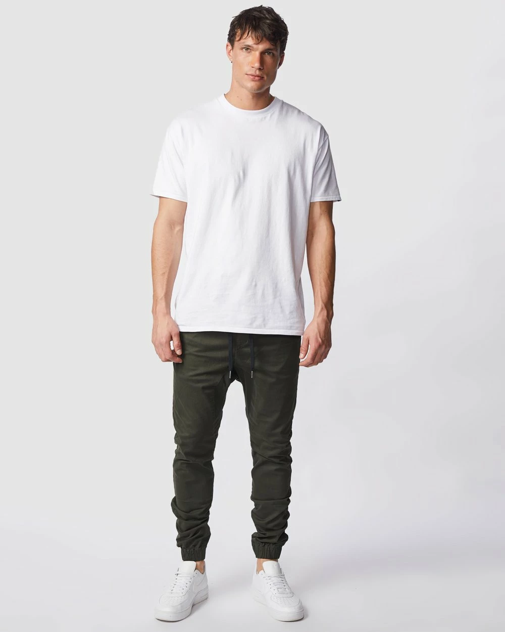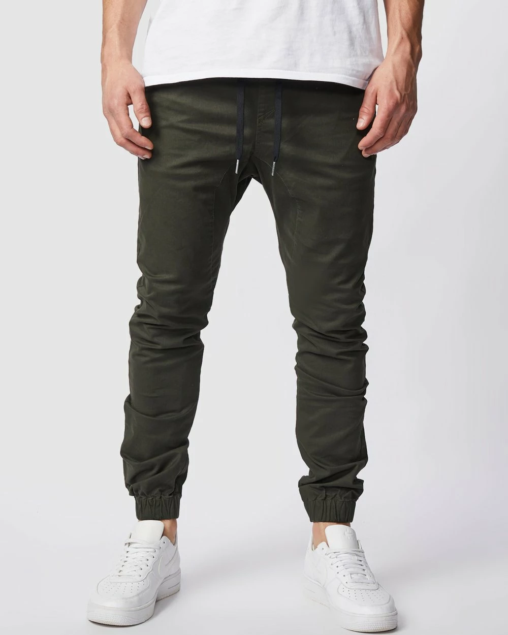Our model is wearing size 32 joggers. He is 185cm tall with a 95cm chest and an 80cm waist.